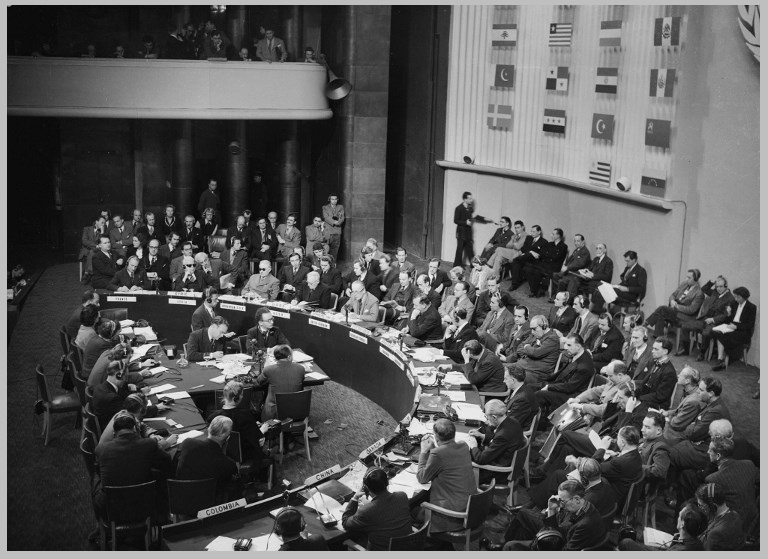 Le 10 décembre 1948, les 58 États membres qui constituent alors l’Assemblée générale adoptent la Déclaration universelle des droits de l’Homme à Paris, au Palais de Chaillot.