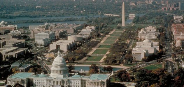 The centerpiece of L’Enfant’s plan was a great « public walk. » Today’s National Mall is a wide, straight strip of grass and trees that stretches for two miles, from Capitol Hill to the Potomac River. Smithsonian museums flank both sides and war memorials are embedded among the famous monuments to Lincoln, Washington and Jefferson.