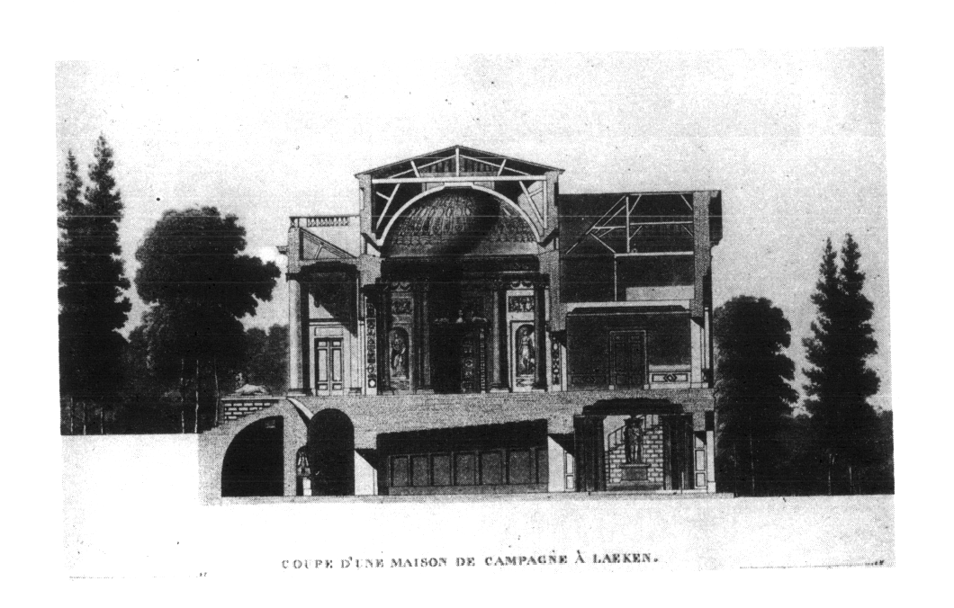 La première, bâtie en 1788 non loin du château de Laeken par Payen l’aîné (qui a d’ailleurs travaillé avec Montoyer à ce château de Laeken) pour un riche bourgeois, Edouard Walckiers. Le texte même de Goetghebuer se réfère à l’Italie : «distribution dans le goût des maisons de plaisance d’Italie bâties par Palladio ». On retrouve donc là la vogue du maître vicentin que l’on aurait tort de trop restreindre à l’Angleterre, terre conquise de l’aveu de tous, en partie parce que le type de la maison de campagne est très prisé par l’aristocratie anglaise très voyageuse et italophile.