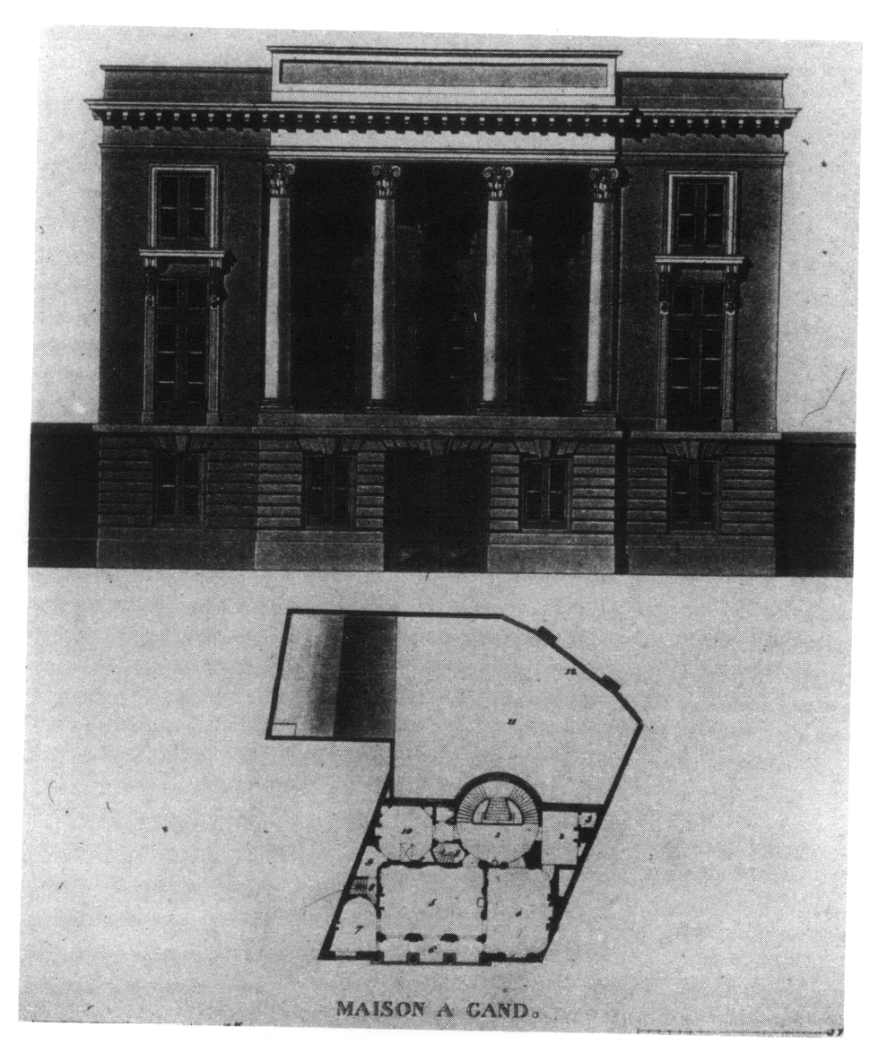Je retiendrai deux de ces monuments étudiés par Goetghebeur, tous les deux contemporains et datant de l’extrême fin du XVIIIe siècle, parce qu’ils me semblent bien caractéristiques des tendances d’alors; de plus tous les deux sont des œuvres d’architectes autochtones. L’un est une maison de ville, l’autre une maison de campagne.