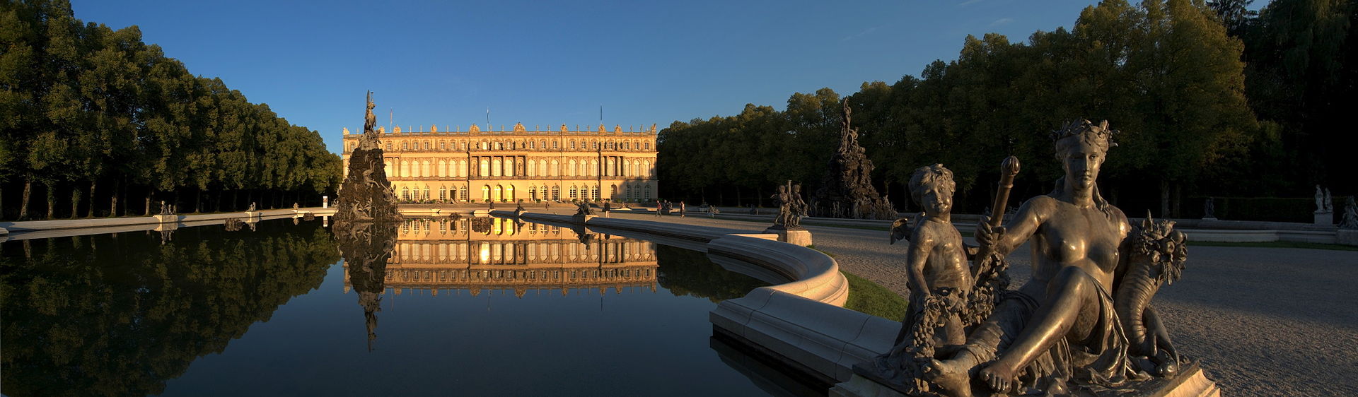 In 1876 Court Garden Director Carl von Effner completed the plans for a large garden resembling that of Versailles. When the king died, only the sections along the main axis with their famous fountains and waterworks had been completed.