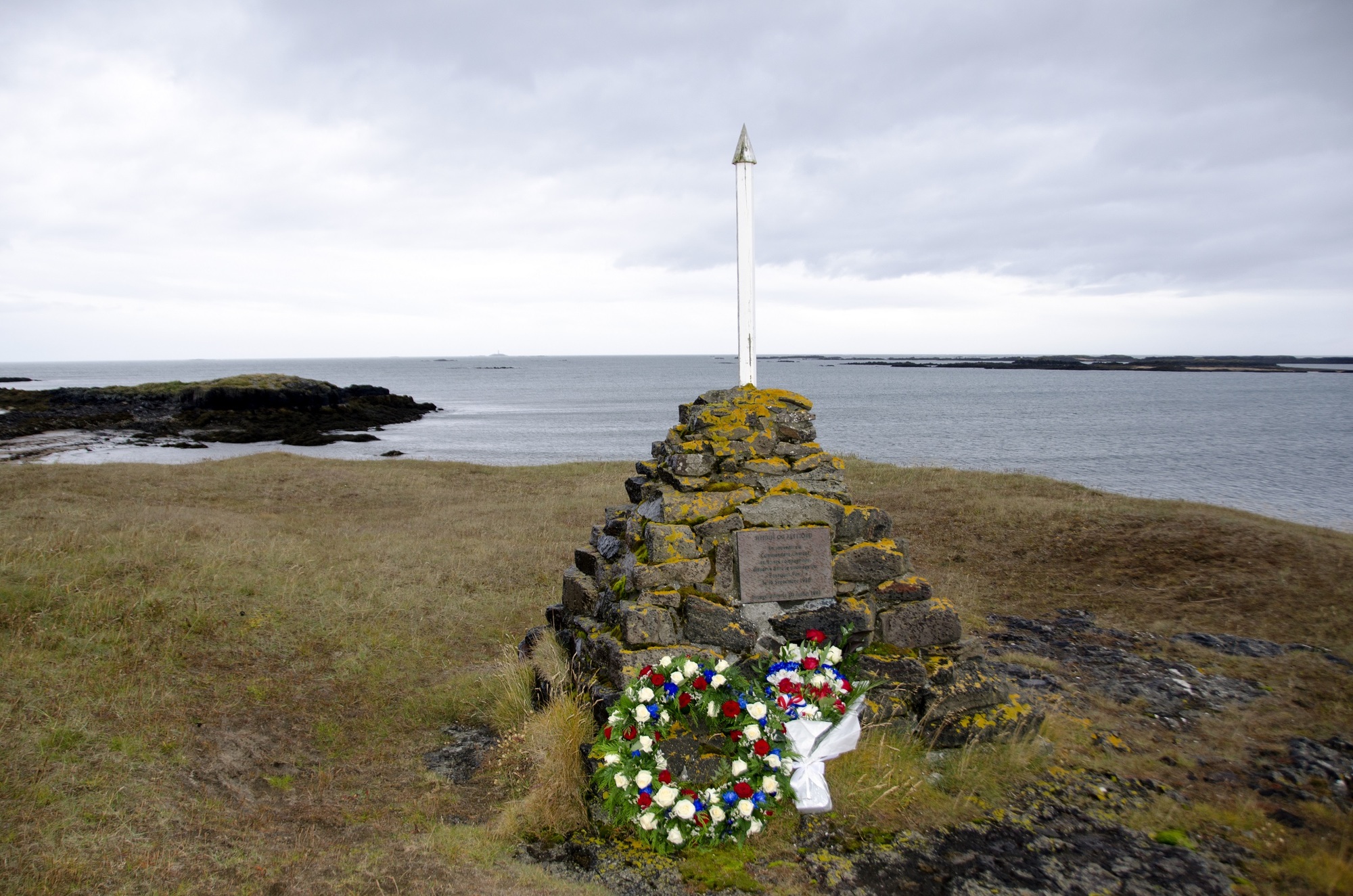 À Aftanès, la cérémonie a également associé des Islandais présents en nombre avec un commandant des gardes-côtes, 2 membres du corps des sauveteurs en mer d’Akranes ainsi que les enfants et petits-enfants de Kristján Þórólfsson, le sauveur d’Eugène Gonidec, le seul survivant du « Pourquoi-Pas? ». Après des mots d’accueil et des discours rappelant les conditions du naufrage, la cérémonie s’est poursuivie par un dépôt de gerbes sur le cairn érigé à proximité des lieux du naufrage. Un dépôt de gerbe effectué par les marins du « Pourquoi Pas ? » a précédé une minute de silence, lourde d’émotions et de sens.L’assistance s’est ensuite déplacée sur la plage attenante, où les corps des 20 naufragés du trois-mâts « Le Pourquoi Pas ? » ont été recueillis en 1936.