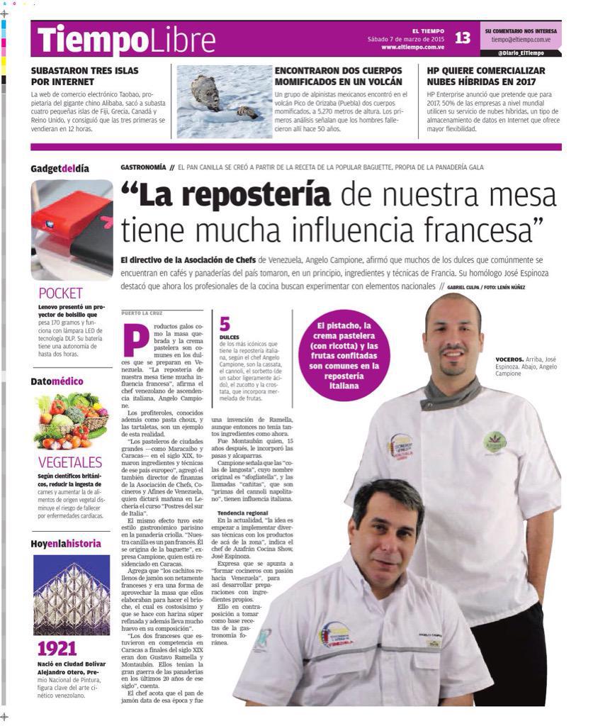 “Los pasteleros de ciudades grandes —como Maracaibo y Caracas— en el siglo XIX, tomaron ingredientes y técnicas de ese país europeo”, agregó el también director de finanzas de la Asociación de Chefs, Cocineros y Afines de Venezuela, quien dictará mañana en Lechería el curso “Postres del sur de Italia”.