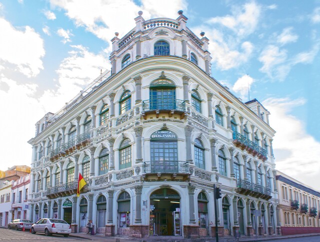 Este edificio, que en Simón Bolívar 13-14 y Juan Montalvo se destaca por su imponente arquitectura de grandes dimensiones, fue construido en 1929 como una vivienda para la familia del señor Manuel Felipe Ullauri Romero. Tiene un marcado estilo neoclásico, presentando además decoración de los períodos renacentistas Luis XIV y Luis XV, como es el caso de los motivos florales de las ventanas.