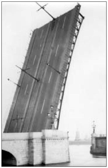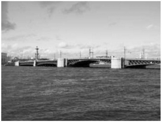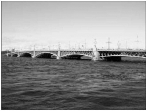 Le monumental pont Troickij traverse la Néva un peu en amont du Palais d’hiver à Saint-Pétersbourg (voir fig. 1). Cet ouvrage, d’une largeur de 23,5 mètres entre les parapets, présente un débouché total de 480 mètres et comportait, pour le passage des navires, une travée mobile de 80 mètres se manouvrant par l’électricité. Les appuis étaient fondés à des profondeurs atteignant 23 mètres sous l’étiage. La première pierre de l’ouvrage fut posée, on l’a dit, en 1897 par le président de la République française et l’empereur de Russie. L’inauguration eut lieu le 19 mai 1903 en présence du tsar et de la tsarine. Elle constitua le clou des fêtes données à l’occasion du deuxième centenaire de la fondation de Saint-Pétersbourg.