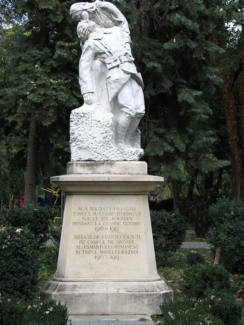 Ce monument à la mémoire des soldats français morts en Roumanie se trouve dans le parc Cişmigiu de Bucarest et représente une femme roumaine en costume traditionnel, soutenant dans ces bras un soldat français, mortellement frappé, sur le front duquel elle pose un baiser (voir ci-contre).