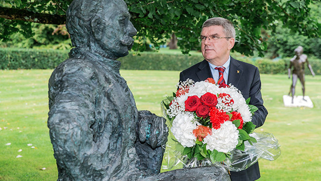 Pour commémorer l’anniversaire de la mort du fondateur des Jeux Olympiques modernes, Pierre de Coubertin, le président du Comité International Olympique (CIO), Thomas Bach, a tenu une petite cérémonie aujourd’hui au siège du CIO à Lausanne.