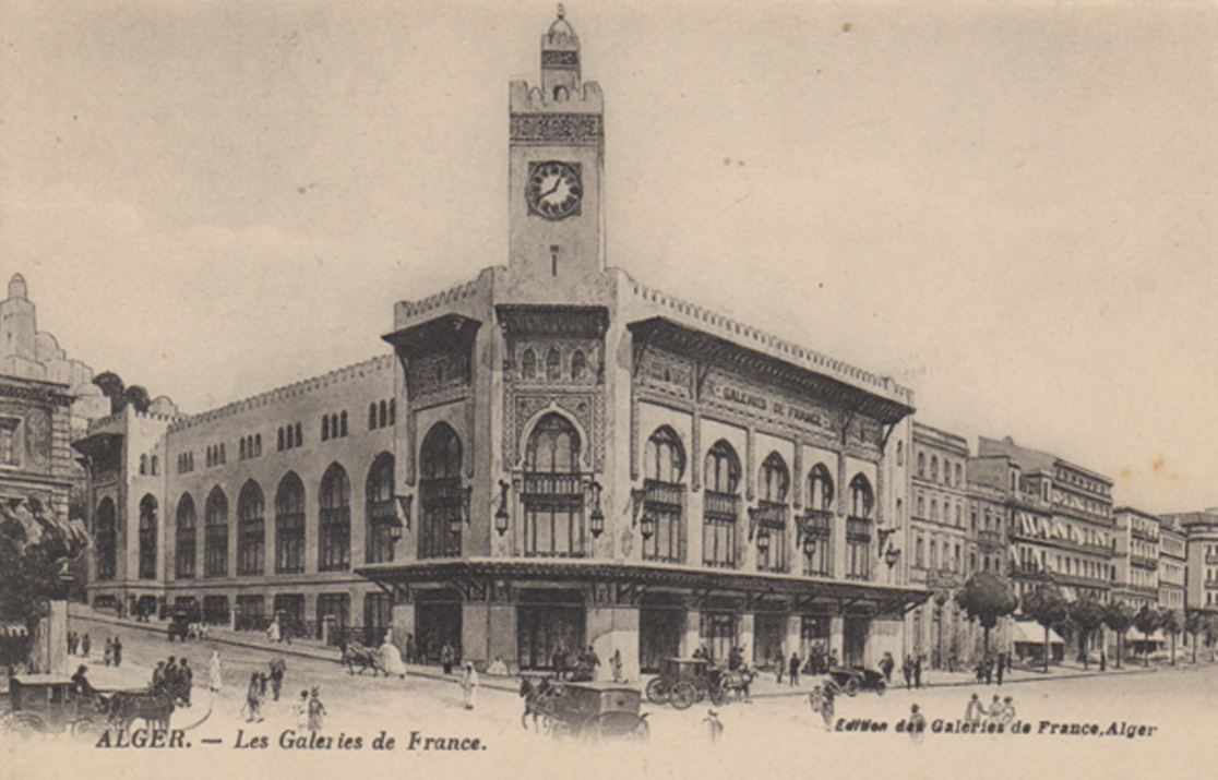 Ceux qui ont retenu de la rue d’ Isly l’image qu’elle avait à la fin du 19è siècle peuvent témoigner du véritable miracle qui s’y est accompli. A l’endroit où les Galeries de France érigeaient au début du 20ème siècle leur élégante et luxueuse architecture, existait naguère un immeuble banal, à façade morne, au rez-de-chaussée duquel le commerce était principalement représenté par un café maure et une épicerie mozabite ! La Société française des Magasins Modernes transforma cette masure en palais.