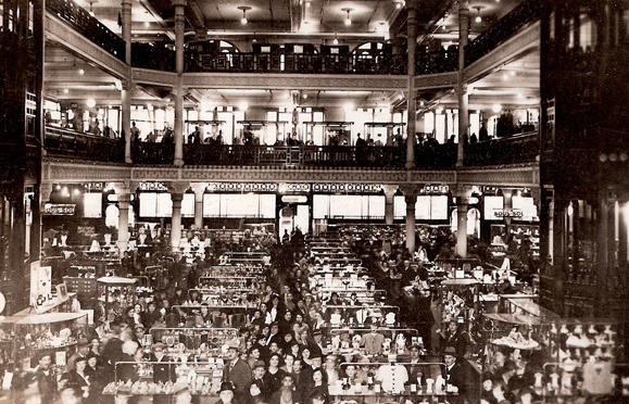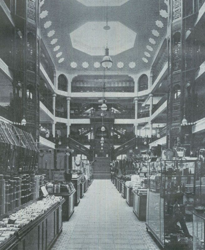 Nous ne nous attarderons point à détailler les authentiques merveilles architecturales qui composaient l’aspect extérieur de ces grands magasins. Qui ne les connaissait ?