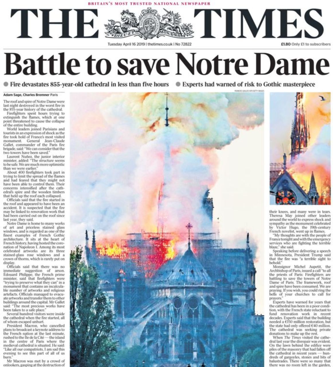 L’incendie de Notre-Dame fait la Une de la presse internationale | Le Parisien