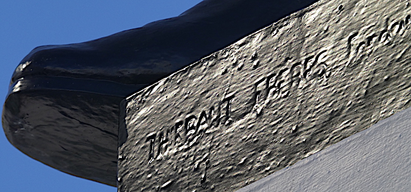 À la bases des statues, signatures du fondeur THIÉBAUT et des sculpteurs : pour les statues de Prat, de Serrano et du marin inconnu : D. PUECH et pour Riquelme et Alvea : V. ARIAS