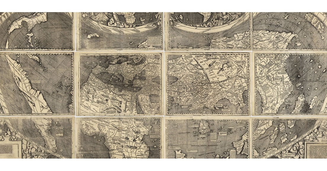 En 1507 est gravé et imprimé en 12 feuillets de 43 x 59 cm un planisphère cordiforme intitulé Universalis cosmographiae secundum Ptholomaei traditionem et Americi Vespucci aliorumque lustrationes. Assemblées, ces 12 feuilles reconstituent une carte cordiforme de 1,29 m de haut sur 2,32 m de longueur couvrant les 360° du globe terrestre.