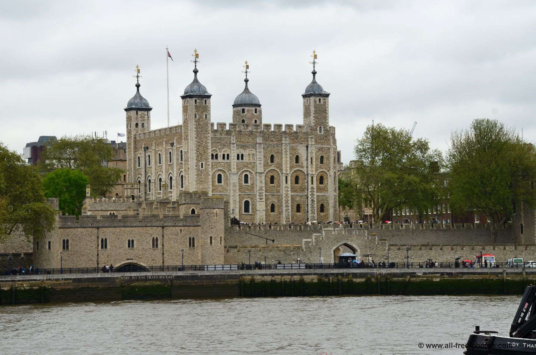 The White Tower, an impressive parallelepipedal block, rises to more than 27 m above the mound. The massive walls were made from Kentish limestone, with ashlars of Caen stone, imported at great expense from the conqueror’s Norman domain, laid at the corners and around the doors, windows and arrow-slits. Inside, the three principal levels of the keep incorporates the requirements of both a defensive work and a royal residence, including a chapel.